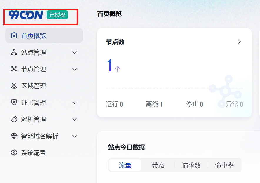 这里可以看见你账号的大概信息,有多少个站点、有多少个节点、有多少个证书以及站点今日数据。