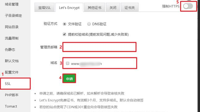 保存设置后,别忘了开启全站强制 HTTPS,确保访问时更加安全。具体操作可以参考宝塔的教程。
