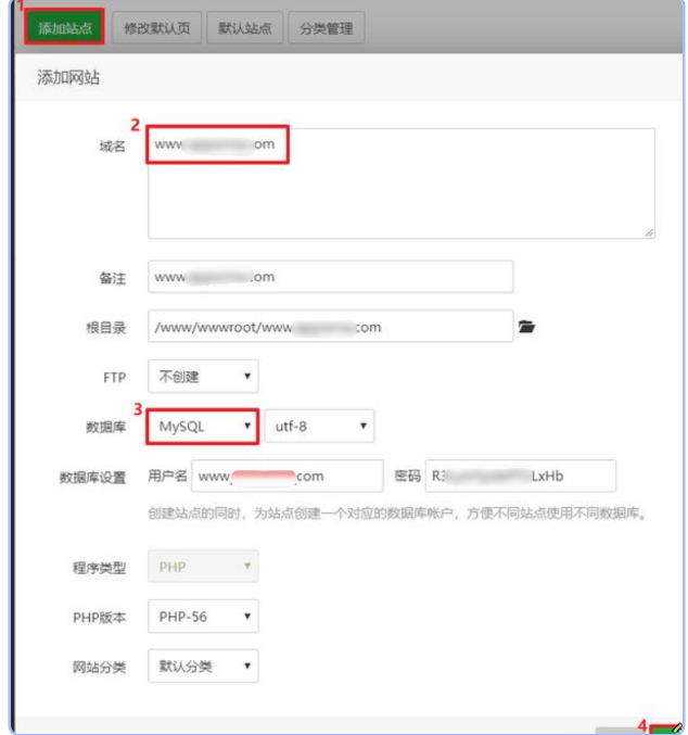 在宝塔面板的“网站”界面,点击右上角的“添加站点”按钮。在域名字段中,输入你申请的免费域名(可以在这里找到一些提供免费域名的平台)。选择 MySQL 作为数据库类型,设置好其他信息后点击“提交”。