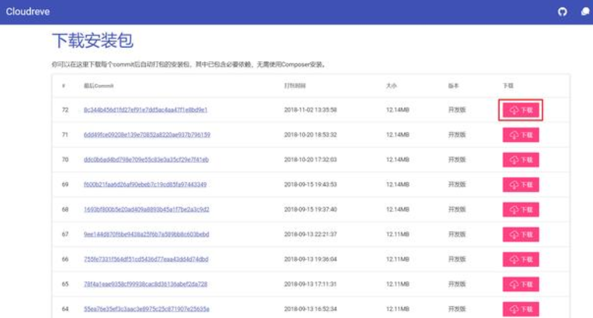 接下来,去 Cloudreve 的官方 GitHub 官网,下载最新版本的安装包。找到下载链接并点击下载。